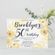Calligraphy birthday party invitations with yellow flowers and black changeable text..