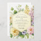 A delicate arrangement of soft yellow, lavender, and blush blooms evokes a whimsical, romantic atmosphere. Lush greenery and airy blossoms create a vintage botanical feel. The artwork suggests a natural, artful charm.