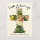A pretty reproduction of a floral cross vintage Easter card, it has been edited to clean the image up, and it has a reproduction of a vintage postcard on the back so that you can write a message. Send it in the mail or give it with an Easter gift. This is a pretty choice for a religious greeting. Customise the message on the front of the card using the editing tool in the listing to personalise the family name.