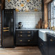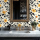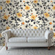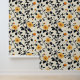 Yellow Floral Design with Black Vines Wallpaper