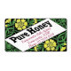 Pure Honey jar labels with typography at an angle for eye-catching displays at the farmers' market or green grocer. Three lines of text to personalise the label with the beekeeper name or apiary business name, address and phone number, or add the harvest date and weight of the honey.