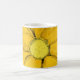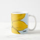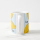 Close-up of pretty hand-painted yellow flower with yellow centre and black brushed accents dinnerware accents. Love is written in black script around light blue mug. Pretty springtime summer mug to brighten up someone's day. Original Graphic Artwork by TamiraZDesigns. www.zazzle.com/tamirazdesigns