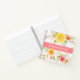 Here’s a wonderful way to keep track of all thoughts. Enjoy jotting down your daily musings in this beautiful, chic, romantic, vintage floral custom name square, spiral journal notebook. Rustic yellow, orange, red and pink watercolor flowers overlay a white rustic wood background. Personalise the white handwritten script calligraphy overlaying the peach pink band with your name. 8 different inside paper designs to choose from. Makes a stylish statement every time you use it. A great gift for a friend, as well as yourself!