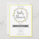 Yellow flowers and grey leaves wreath Baby Shower Invitation. This ideal for a gender neutral theme baby shower. You can edit the text to fill your details and to customise font click "Customise it". *Please note that the Zazzle Watermark that appears in the zoom preview will not appear on the final printed product © Rosewood and Citrus