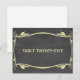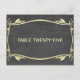Elegant and trendy Flourish Chalkboard Table Number Postcard featuring a chalkboard look background and a fancy swirl and leaf art deco border in yellow. Easy to customise, simply add the appropriate table number(s) in the text field provided. Click "Customise It" to find more personalisation options.