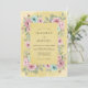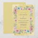 This design showcases a vibrant, sunny yellow backdrop complemented by a lush arrangement of painterly watercolor blossoms. Romantic pink roses and striking teal anemones are intertwined with soft sage green leaves and delicate sprigs. The overall mood is cheerful and bright, evoking the essence of a sun-drenched seasonal meadow in peak bloom.