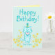 Yellow Flower&Blue Cat wearing Hat&Heart Birthday Card