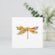 Artistically painted, floral dragonfly in contrasting orange and purple with yellow, bright, blooming California poppy and blue wildflowers on white background.