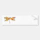 Artistically painted, floral dragonfly in contrasting orange and purple with yellow, bright, blooming California poppy and blue wildflowers on white background.
