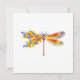 Artistically painted, floral dragonfly in contrasting orange and purple with yellow, bright, blooming California poppy and blue wildflowers on white background.