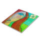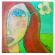 My colourful abstract portrait of a red haired woman with a yellow flower in her hair printed on ceramic tile