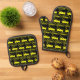 Yellow! Flower Pattern Oven Mitt & Pot Holder Set