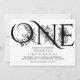 Stunning elegant first birthday party invitation featuring black letters with outlined flowers and foliage accents.