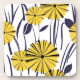 Seamless retro style illustration with yellow flowers and blue leaves on white background