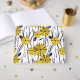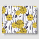 Seamless retro style illustration with yellow flowers and blue leaves on white background