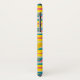 Elegant monogram case with stripes and triangles colourful background and yellow flowers .
