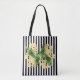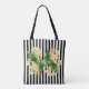 Yellow flowers on black and white stripes tote bag