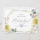 BRIDAL PARTY PROPOSAL INVITATION | Geometric shapes with shades of sunny yellow and blush ivory magnolias and peonies - a gold geometric multi faceted terrarium style frame adorned with greenery and floral bouquets. Reverse is a complimentary coordinated colour. Customise text, font style, colour and size. Original artwork created for the BarefootBride™ by © WhimsicalArtwork™ - This is part of a complete Wedding Stationery Suite with matching wedding, baby shower and other event stationery.