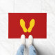 YELLOW FOOTPRINTS ON RED DOORMAT