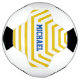 Yellow fun stripes with customisable name soccer ball. A great gift for the soccer (or football) fan in your life!