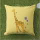 Funny giraffe outdoor pillow with a cartoon giraffe nibbling on a light purple flower and holding some flowers with its tail while roller skating, on yellow background. This cute giraffe design will appeal to girls who love giraffes and cute cartoon illustrations, as well as the cheerful yellow colour. It will make a great gift for a skater girl, too.