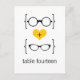 Quirky and chic Geeky Glasses Wedding Table Number Postcard featuring a yellow heart flanked by two pairs of geeky eyeglasses, a manly pair and a girly pair representing the groom and bride. This offbeat but sophisticated table card is perfect for your nerdy wedding! Easy to customise, simply add the personalised text of your choosing. Click on the "Customise It" button to find additional personalisation options.
