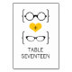 Quirky and chic Geeky Glasses Wedding Table Card featuring a yellow heart flanked by two pairs of geeky eyeglasses, a manly pair and a girly pair representing the groom and bride. This offbeat but sophisticated table number card is perfect for your nerdy wedding! Easy to customise, simply add the appropriate table number(s) in the text fields provided. Click on the "Customise It" button to find additional personalisation options.