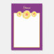 This Post-it® Note pad features a photos of three yellow gerbera daisies across the top. The background colour is purple and features a white box with a yellow border in the centre of the note pad. Customisable text above the daisies allow you to add a personal name.