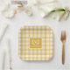 Custom Monogram Paper Plates Yellow Gingham Pattern Design - 6 colours.