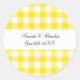 Yellow gingham pattern wedding favours classic round sticker