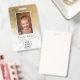 Modern yellow gold foil metallic white marble logo employee photo pass, add your photo, name, title, company logo,.