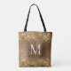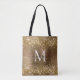 Classic Yellow Gold Glitter Sparkle Brushed Metal Girly Script Monogram Tote Bag