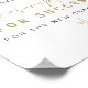 My thoughts on this product was excellent. Well printed in a gloss finishing and just the size l ordered. It arrived in good condition and am overall satisfied with the product. The printing turned out great. I was quite surprised with the finishing touch to the poster. The semi gloss was just right and a perfect size to display at the wedding.