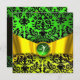 YELLOW GOLD RIBBON EMERALD BLACK DAMASK MONOGRAM INVITATION