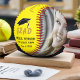 Yellow Grad Congratulations Graduation Photo Softball. Yellow background, graduate cap and white and golden typography. This custom and personalised softball is a perfect gift for a graduate. Personalise it with your photo, graduate name, school name and the year number. You can change any text on the softball.