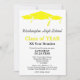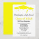 This vertical format minimalist class reunion invitation design features black and yellow text on an all white background with three yellow graduation caps as the top border. The back is a matching solid yellow. Personalise your information, remove information or edit using the design tool to select a font colour, size, and style your prefer.