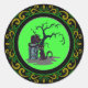 Yellow Green Black Cats Tombstone Tree Halloween Classic Round Sticker