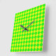 Yellow Green Chequered Diamond Pattern Square Wall Clock