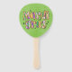 Celebrate Mardi Gras with these hand fans in bright colours of yellow, green and purple on a dark purple background