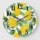 Decorative design of a pattern of yellow juicy lemons on branches with green leaves and delicate white flowers on a white background.