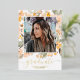 Modern chic yellow floral watercolor graduate script open house photo graduation with real gold foil. Add 3 of your favourite photos with an elegant script calligraphy and photo grid collage.
