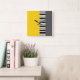Yellow Grey Black and White Striped Modern Square Wall Clock