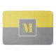 Modern, trendy Yellow Grey Colour Block Monogram bath mat easy to personalise with your initial.