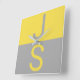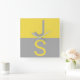 Yellow & Grey Modern Initials Monogram Square Wall Clock