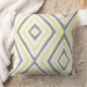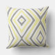 These 20" x 20" throw pillows feature a modern diamond design in butternut yellow and grey on a white background. Also available in 16" x 16".