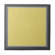 These fun decorative tiles feature a yellow with tiny grey polka dots pattern in the centre. The edge is bordered in an alternating dark and light grey.