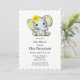 Yellow Grey Sunflower Elephant Baby Shower Invitation