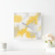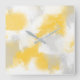 Yellow Grey & White Abstract Brushstrokes Square Wall Clock