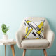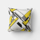A lively medley of bold, geometric shapes and lines in yellow with different shades of grey, black, and white combine for an angular abstract design, slanted on the diagonal. A vivid and contemporary look, with retro influence reminiscent of the Mid-Century Modern style, the design evokes a classy and minimalistic quality, with an artistic, calming and comfortable vibe for living area, bedroom, workspace, terrace, or patio decor, offering a feeling of warmth and relaxation. There is much potential for artistic expression with this accent piece, which fits into a number of styles, trendy to classical (including retro/vintage, country farmhouse, suburban modern, rustic hacienda, and urban loft/high rise).