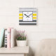 Yellow Grey White Stripes Square Wall Clock
